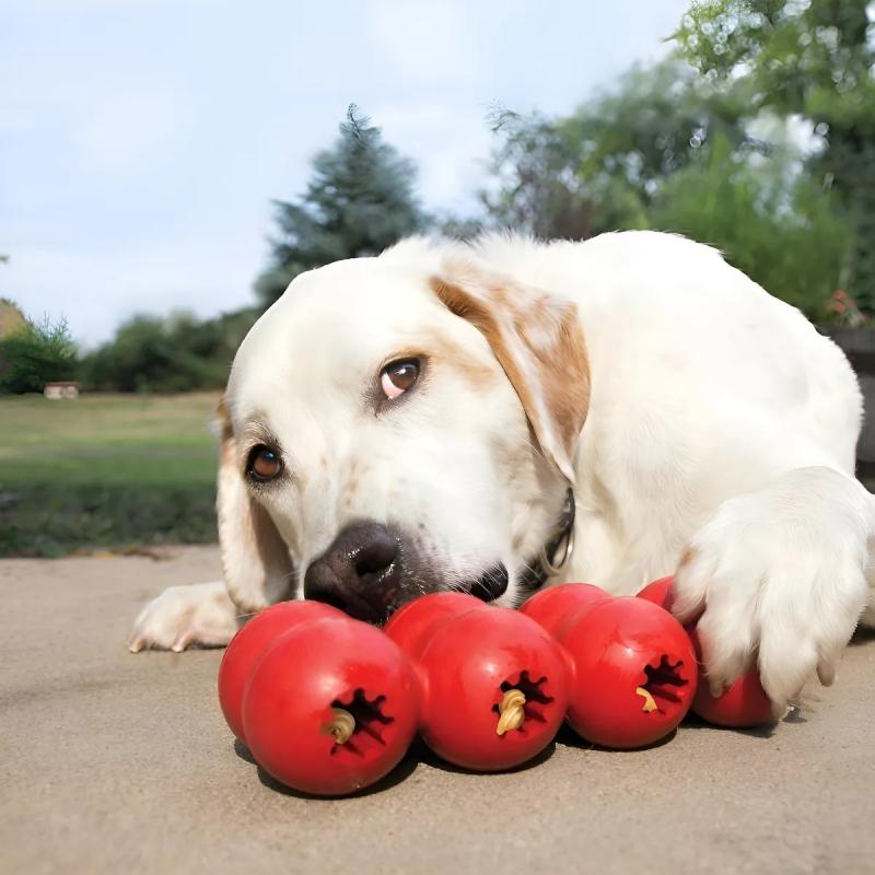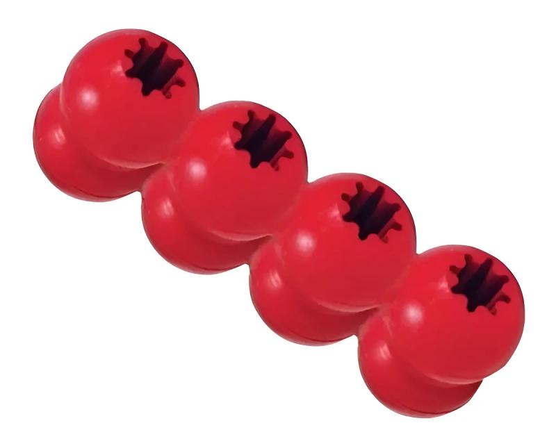 ¡Un tesoro de masticación! Rellene los cuatro espacios de KONG Goodie Ribbon con golosinas y las crestas Goodie Gripper™ en el interior hacen que sacar los bocados sea un rompecabezas mentalmente desafiante para los perros. Durable KONG Classic Rubber satisface los instintos naturales de masticación al tiempo que brinda una solución duradera que mantiene a los perros ocupados. Ideal para rellenar con KONG Easy Treat, KONG Snacks de la croqueta favorita de un perro.