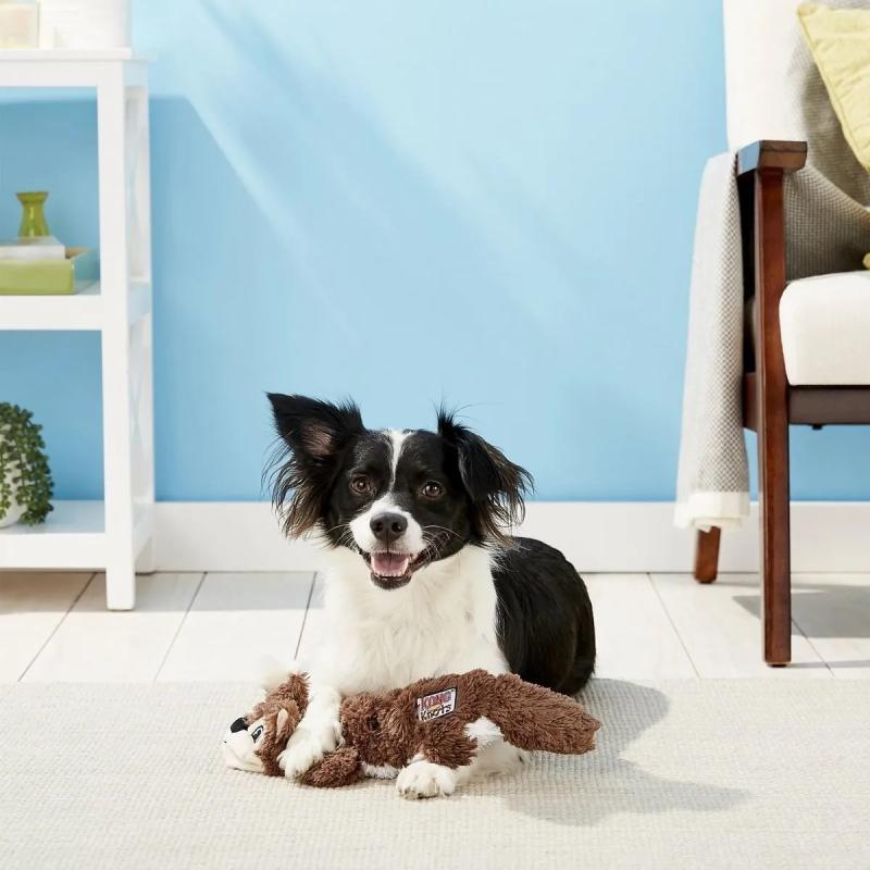 KONG Scrunch Knots son juguetes realistas que mantienen a los perros enganchados. El material de felpa se arruga alrededor de una cuerda interna, mientras que los lados elásticos generan un movimiento natural que atrae al juego. Los nudos internos satisfacen los instintos naturales y estos juguetes no contienen relleno para menos desorden. ¡Incorporan un sonido que aumenta la diversión!