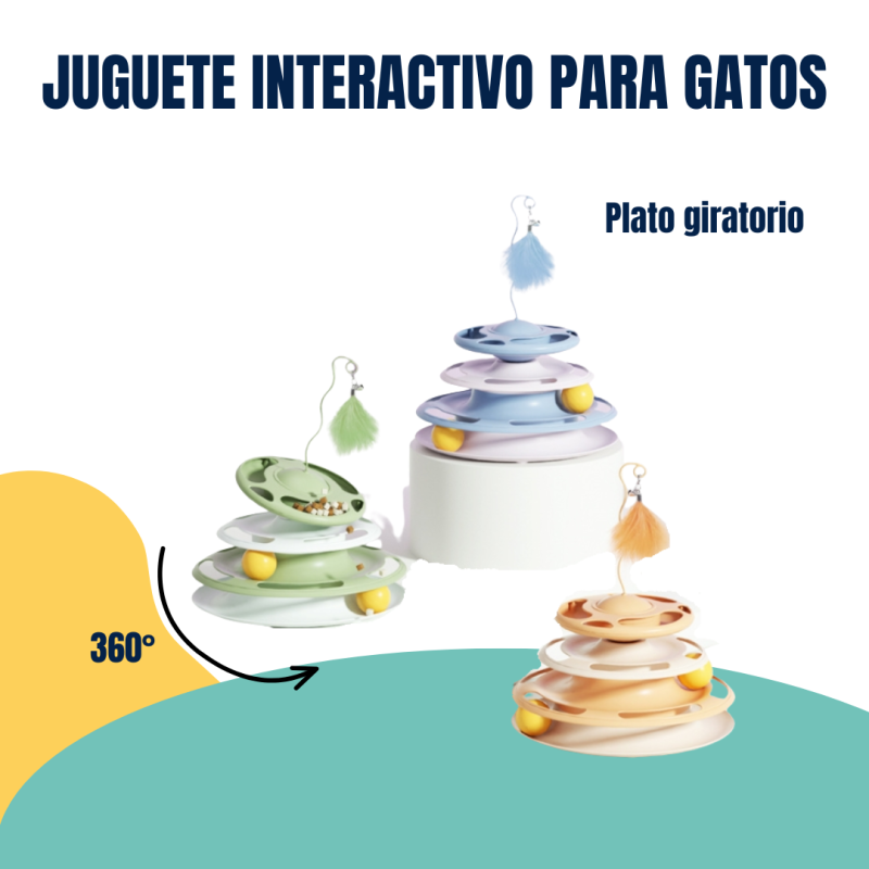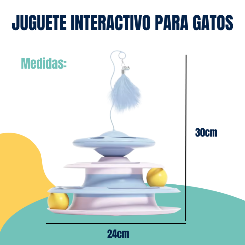 Juguete para gatos interactivo que consta de una torre de 3 niveles con pelotas que da la posibilidad a tu gato que se pueda entretener de manera segura y muy divertida